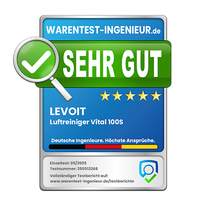 Im Test zeigte der LEVOIT Vital 100S in einem 20 m² großen Testraum eine schnelle und deutlich spürbare Reduktion unangenehmer Gerüche sowie schwebender Partikel wie Staub. Die Reinigungsleistung hängt maßgeblich von der gewählten Lüfterstufe ab: Während Stufe 1 und 2 einen noch akzeptablen Geräuschpegel für den Dauerbetrieb bieten, eignen sich Stufe 3 und der Turbomodus hauptsächlich für eine kurzfristige Intensivreinigung. Der verbaute Infrarotsensor zur Erfassung der Luftqualität arbeitet zwar grundsätzlich funktional, reagierte im Test jedoch träge und nur eingeschränkt zuverlässig. Die Zustandsanzeige der Raumluftqualität erfolgt über vier Farbmodi. Diese gibt lediglich einen groben Orientierungswert. Der Luftreiniger kann über die App VeSync, die Funktionen wie Zeitsteuerung, Betriebsmodi-Anpassung und eine Verlaufsgrafik der Luftqualität bietet, verbunden werden. Ein Kritikpunkt hierbei ist, dass für die Nutzung der App eine Registrierung erforderlich ist. Auch wird die dort angezeigte verbleibende Filterlebensdauer nicht gemessen, sondern rein rechnerisch geschätzt – eine echte Sensorunterstützung fehlt. Ein klarer Nachteil ist der hohe Preis des originalen HEPA-Ersatzfilters, der mit 39,99 € deutlich über vergleichbaren Drittanbieter-Lösungen liegt. Trotzdem überzeugte der Vital 100S insgesamt durch eine effektive Luftreinigung, gute Verarbeitungsqualität und praxisnahe Funktionen. Vor allem für Allergiker, Haustierhalter sowie für Räume mit erhöhter Luftbelastung ist der LEVOIT Vital 100S eine sehr wirksame und praxisgerechte Unterstützung.